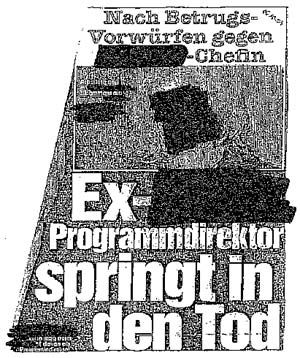 Die Klägerin ist eine wegen verschiedener Vorwürfe gekündigte Mitarbeiterin des … . Die Beklagte verlegt die Tageszeitung … in deren Ausgabe vom 6. Oktober 2009 auf Seite 8 ein Artikel unter der Überschrift “Nach Betrugs-Vorwürfen gegen …Chefin – Ex… Programmdirektor springt in den Tod” erschien. Zwischen den beiden Überschriften war eine Fotografie der Antragstellerin abgedruckt, zu der die Bildinnenschrift lautete: “Arbeitete eng mit … zusammen: die gefeuerte …Fernsehfilmchefin … .