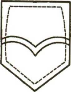 Stoffteilen unterhalb des Scheitelpunkts gebildete Pfeilform, die gegenüber den farbigen Nähten sehr im Hintergrund bleibt und den Gesamteindruck des Zeichens nicht maßgeblich bestimmt.