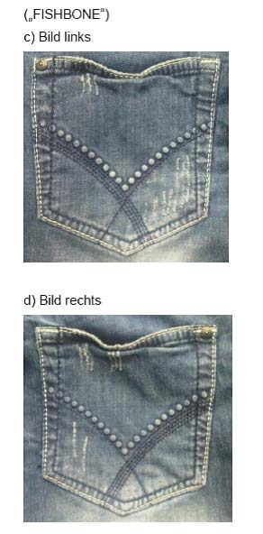 Hosen anzubieten, in den Verkehr zu bringen oder zu diesem Zweck zu besitzen, die gemäß der folgenden Abbildungen auf den Gesäßtaschen mit einer nach unten spitz zulaufenden Doppelschwinge versehen sind: