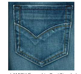 (3) Das Modell „AMISU II“ zeigt ebenfalls eine spitz nach unten zulaufende, von zwei gepunkteten Linien gebildete Schwingenform, wobei – betrachtet man die rechte Gesäßtasche – die von rechts kommende obere Linie über den Scheitelpunkt hinaus drei Punkte aufweist (auf der linken Gesäßtasche gilt entsprechendes für die von links kommende obere Linie). Dieser Umstand lässt allerdings den Erinnerungseindruck einer Schwingenform unberührt. Gleiches gilt für die in den oberen beiden Ecken jeweils angebrachten Nieten. Klagemarke und „AMISU II“ sind sich daher ebenfalls mittelgradig ähnlich.